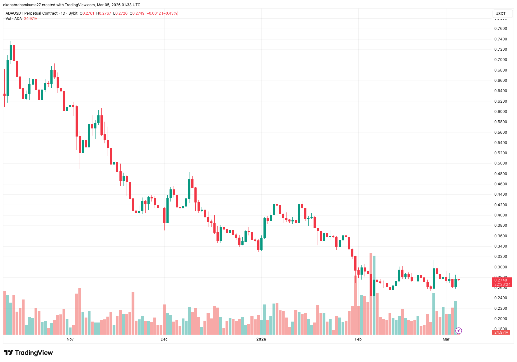 但链上指标显示,大型持有者最近抛售了惊人的2.1亿枚ADA代币,将价值超过5670万美元的资产直接甩给散户买家。因此,截至3月4日,ADA技术分析显示其周线图下跌了4%。